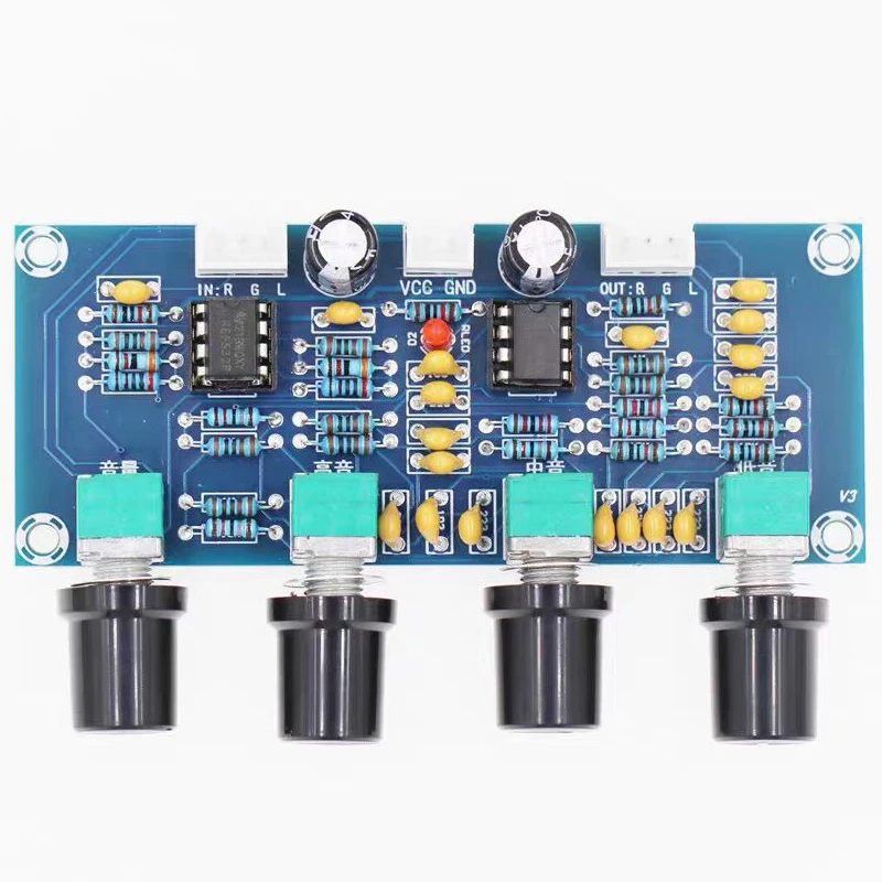 Product Description: preamplifier tone board, suitable for use with amplifiers, audio amplification and high, medium, bass adjustment; so that you have a better listening experience; the use of dual-core NE5532 original imported chip power supply voltage is DC12-24V