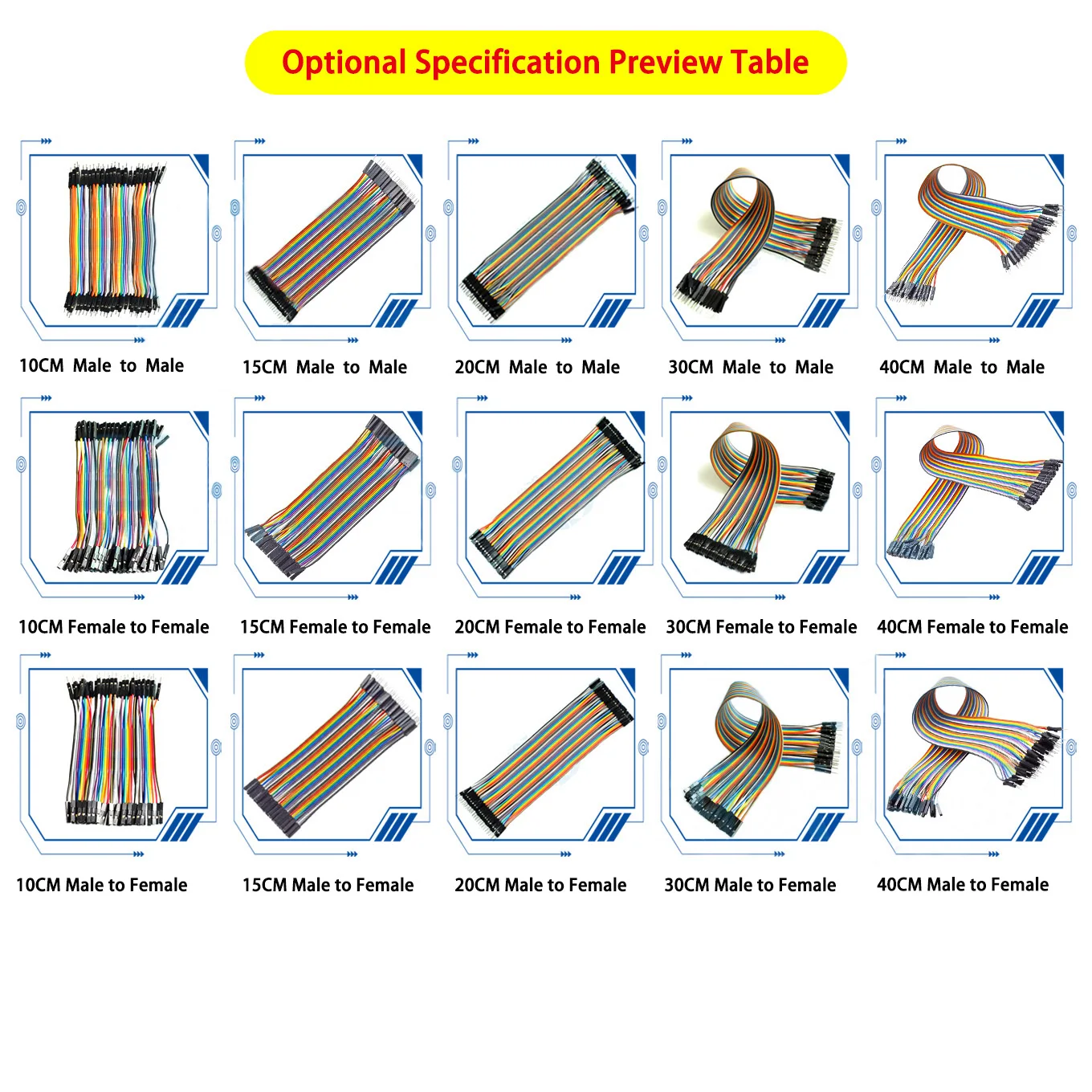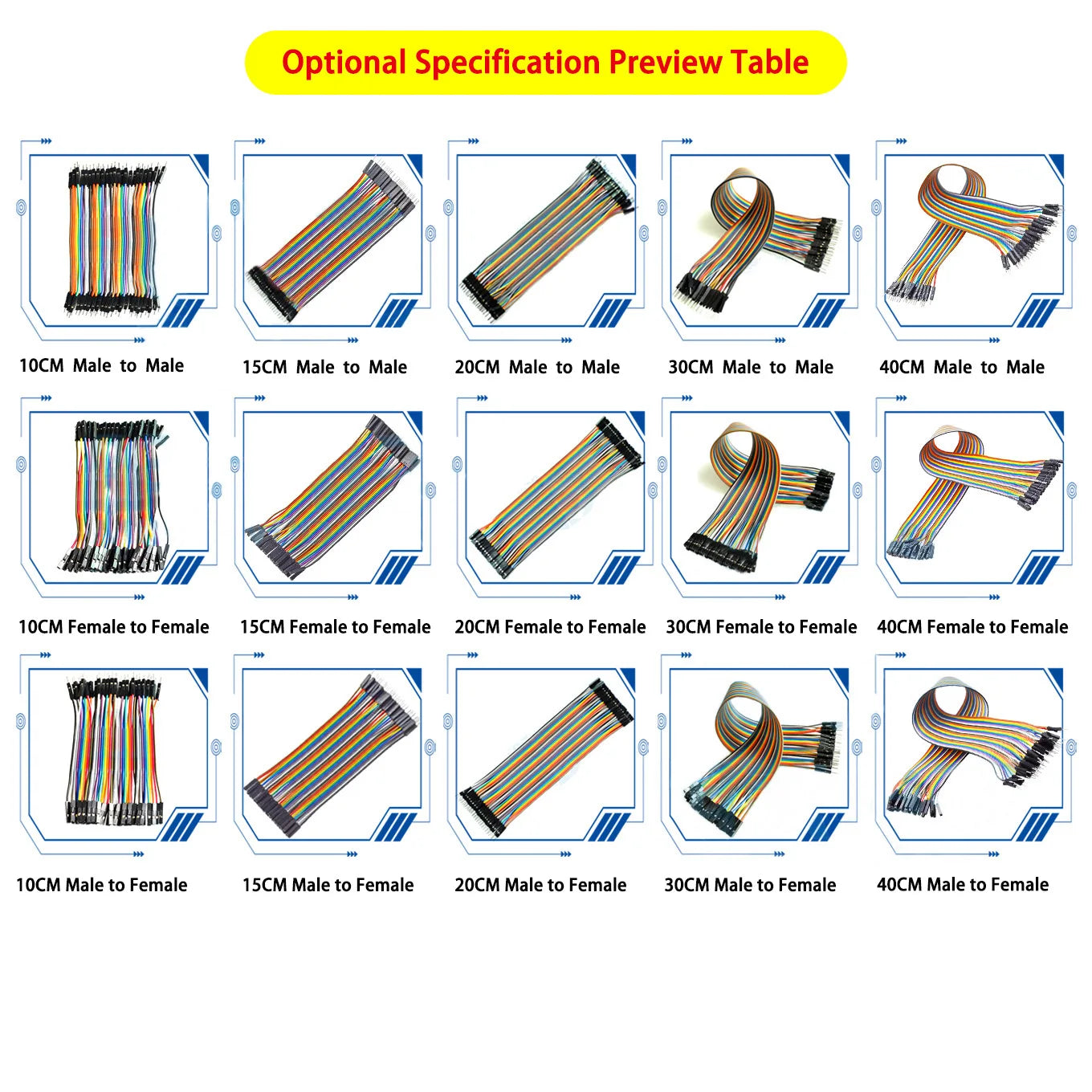 DuPont Jumper Wires Female to Female, Male to Female, and Male to Male