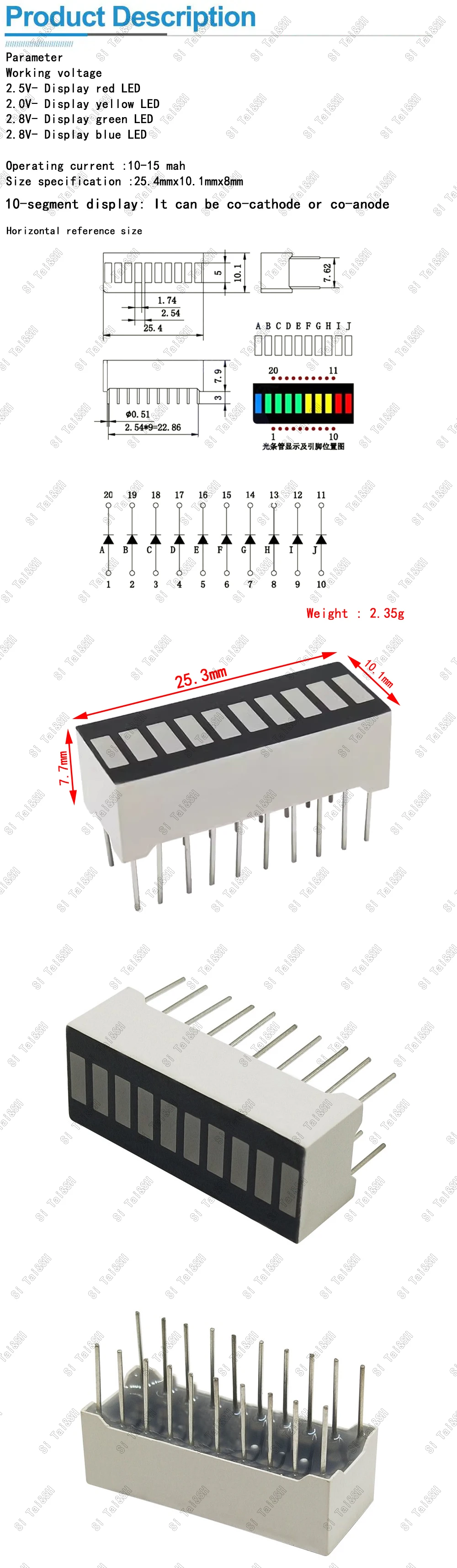 10-Segment Multicolor LED Light Bar Display Module Red Yellow Green Blue Indicator B10BRYGB