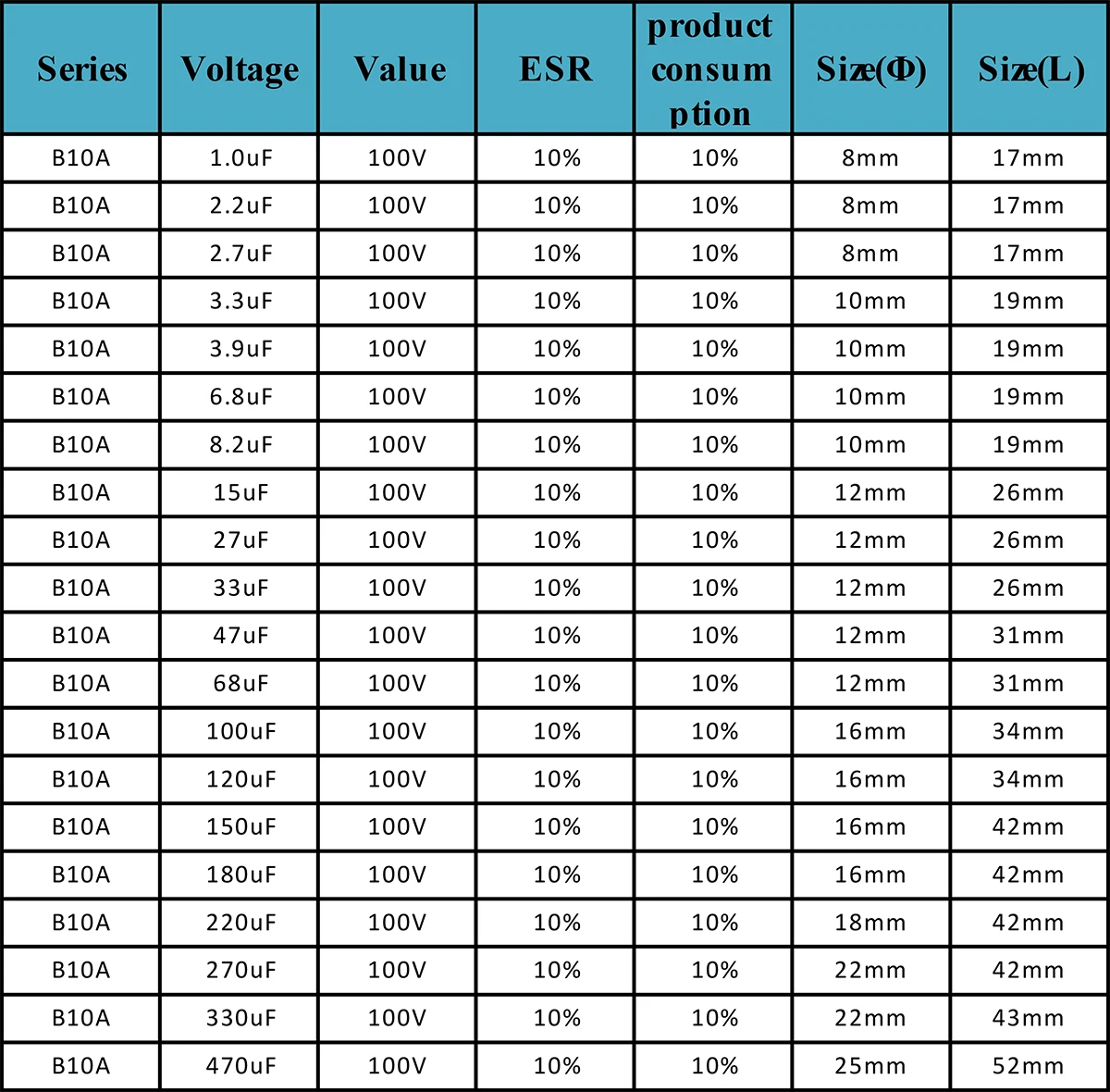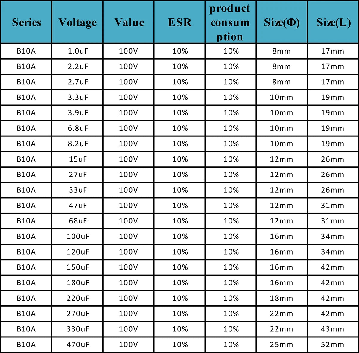 1Pcs B10A 100V Superior Capacitor Horizontal Electrolytic Capacitor Speaker Frequency-Divided Audio Capacitor Audiophile 5.6uF-470uF