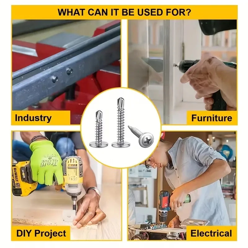 200x Stainless Steel Self-tapping Screws Round Washer Flat Head Cross Phillips Self Drilling Screw Fastener for Wood Sheet Metal
