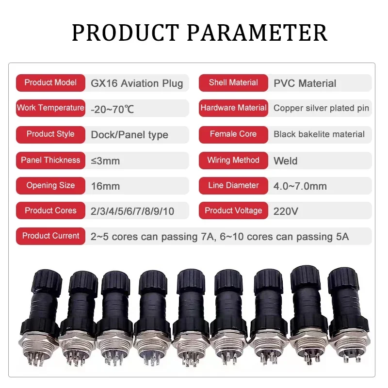 5/20 Sets GX16 M16 QL16 16MM Aviation Plug & Socket, Male Female Docking Back Nut Panel Mounted Connector with 2/3/4/5/6/7/8/9 Pins