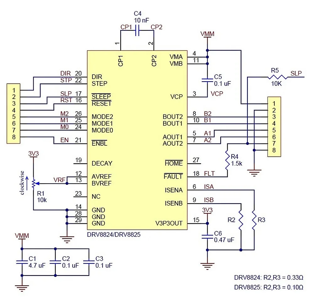 2. The module has a pinout and interface that are nearly identical to those of our A4988 stepper motor driver carriers, so it can be used as a higher-performance drop-in replacement for those boards in many applications.