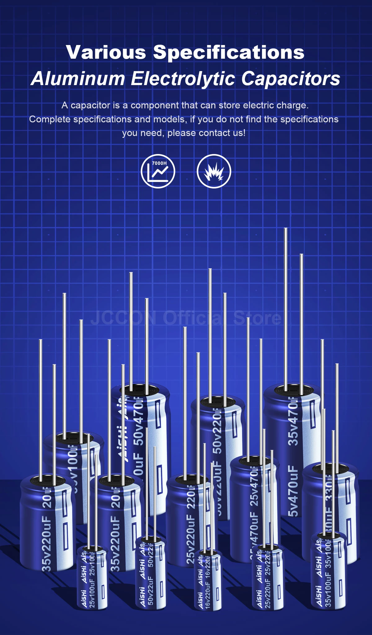 AISHI Aluminum Electrolytic Capacitor High Frequency Low ESR Capacitors 16V 25V 35V 50V 10UF 220UF 7000Hours Long Service Life