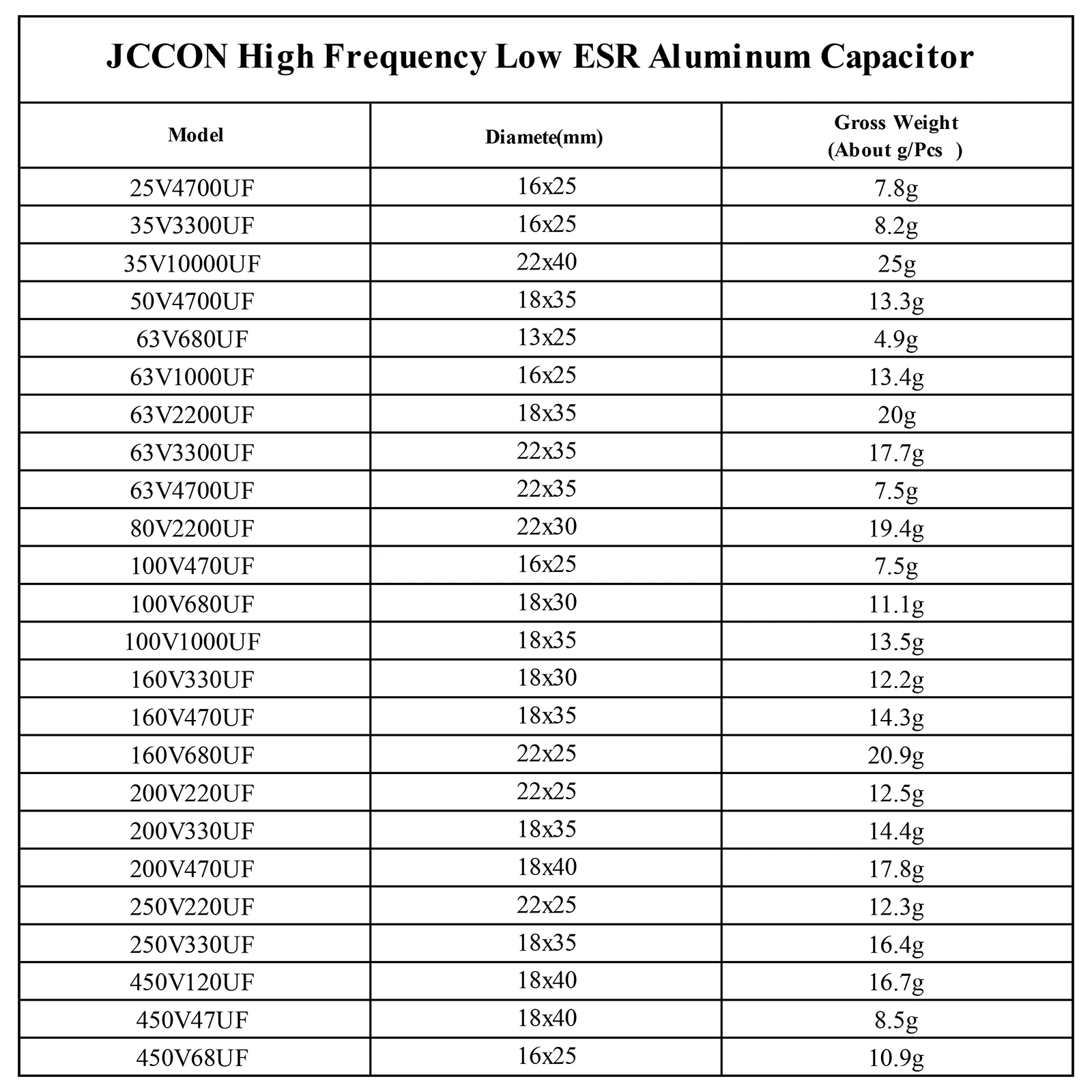 Voltage: 25V 35V 50V 63V 100V 160V 200V 250V 450V
