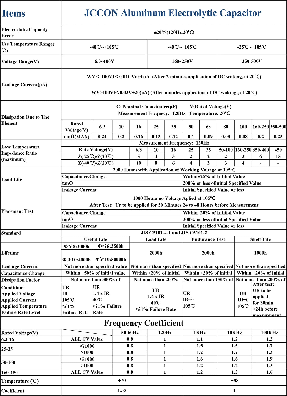 JCCON Aluminum Capacitor 6.3V 10V 16V 25V 35V 50V 63V 100V 400V 450V 100UF 220UF 330UF 680UF 1000UF 470UF High Frequency Low ESR