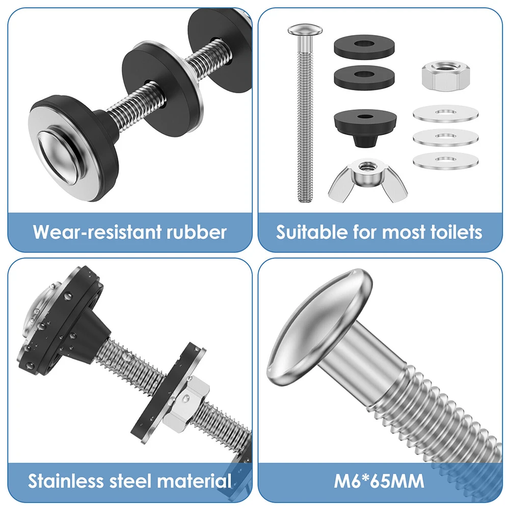 *Size Compatibility:Before purchasing, please check the size carefully. Our toilet tank bolts kit adopts the M6*65mm standard specification, compatibility with most toilet tanks.