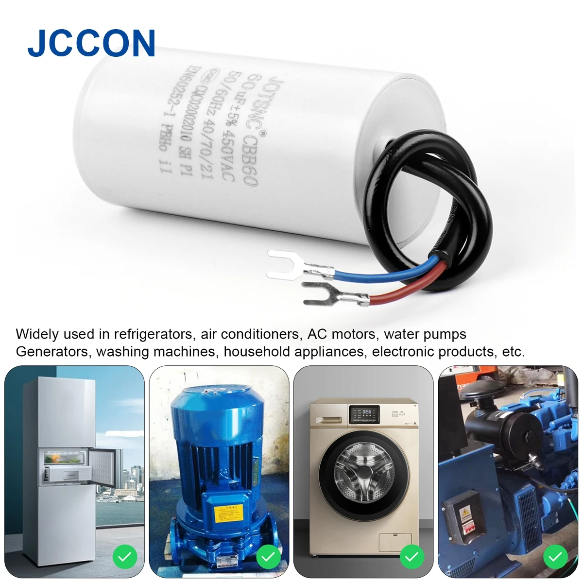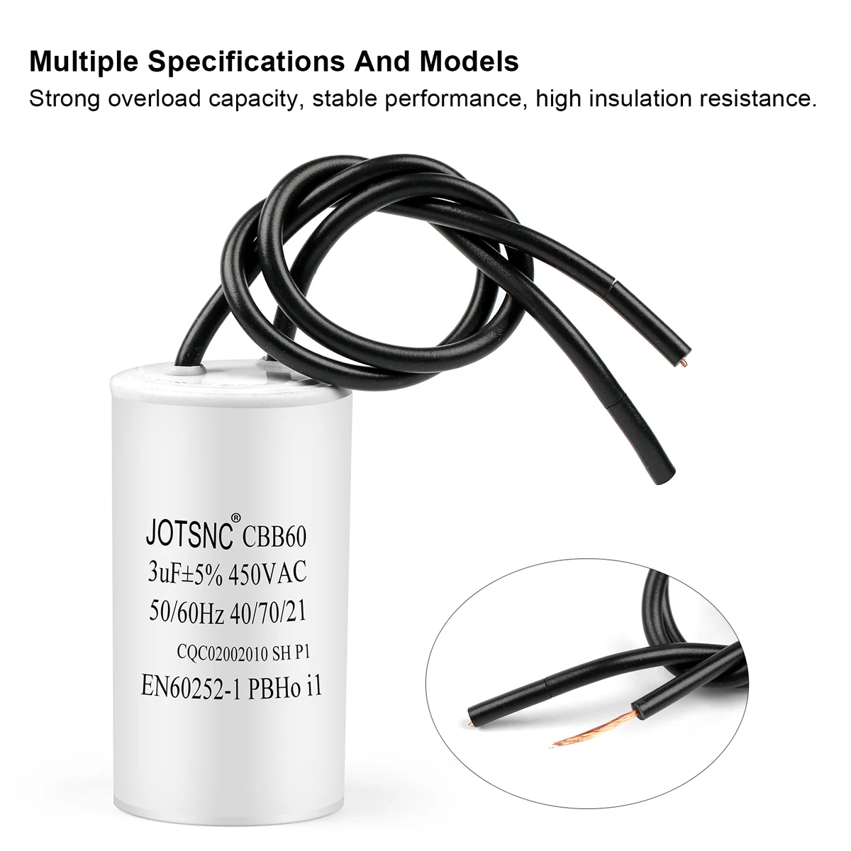 2Pcs CBB60 Motor Running Capacitor 450V Series AC Water Pump Startup Capacitors Start Motor Run 450VAC 3uF-80uF
