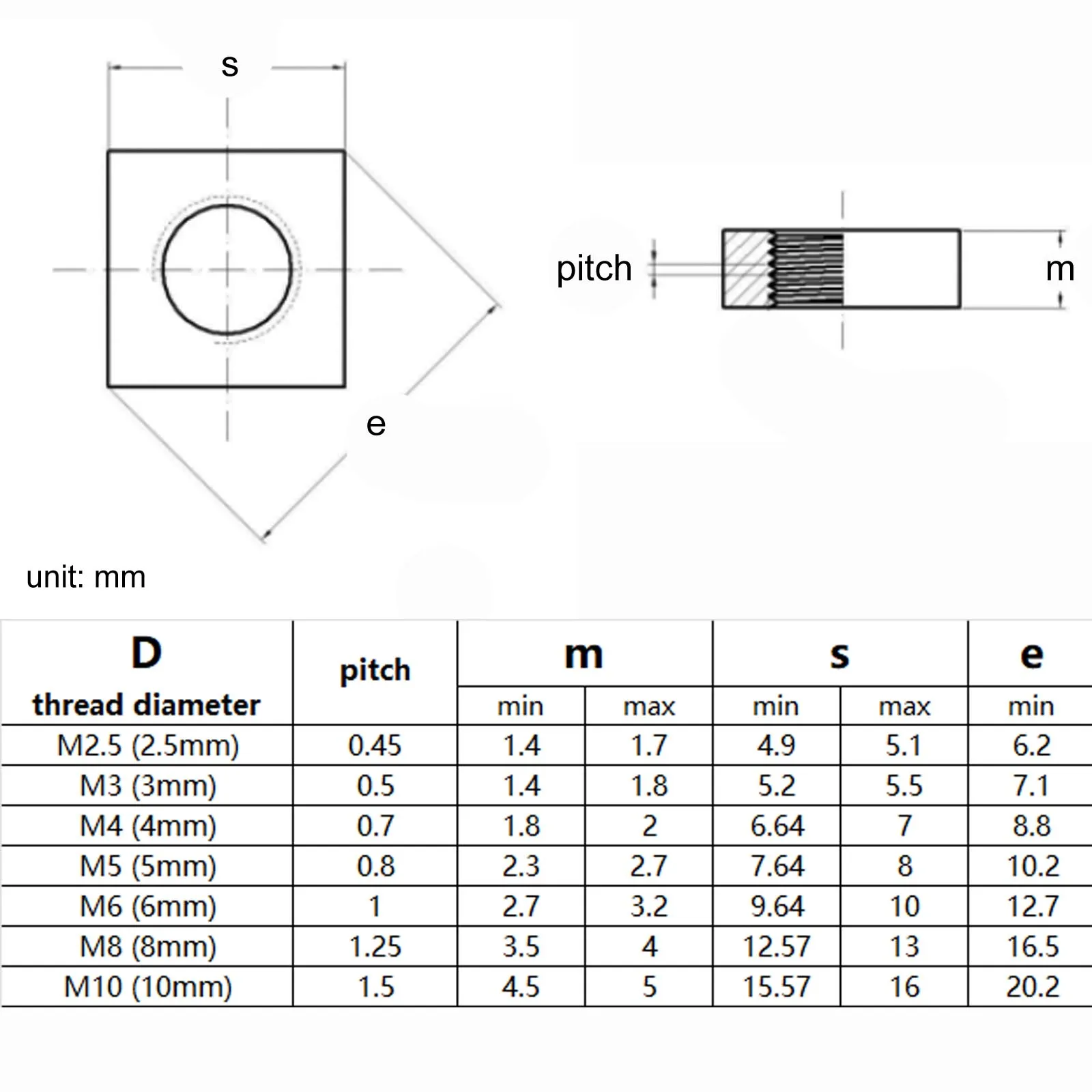 DIN562 304 A2-70 Stainless Steel Thin Square Nut Metric Thread M2.5–M10