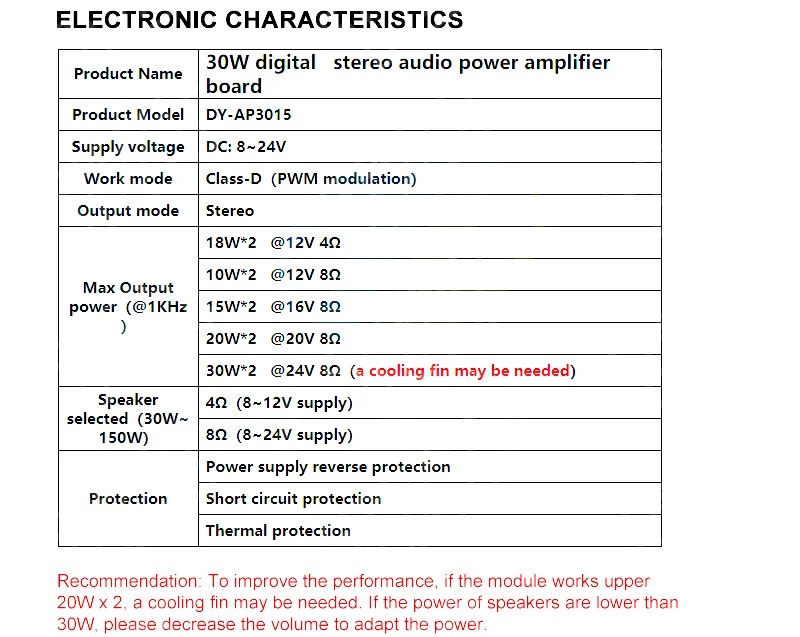 Dissipation Power: 30W * 2