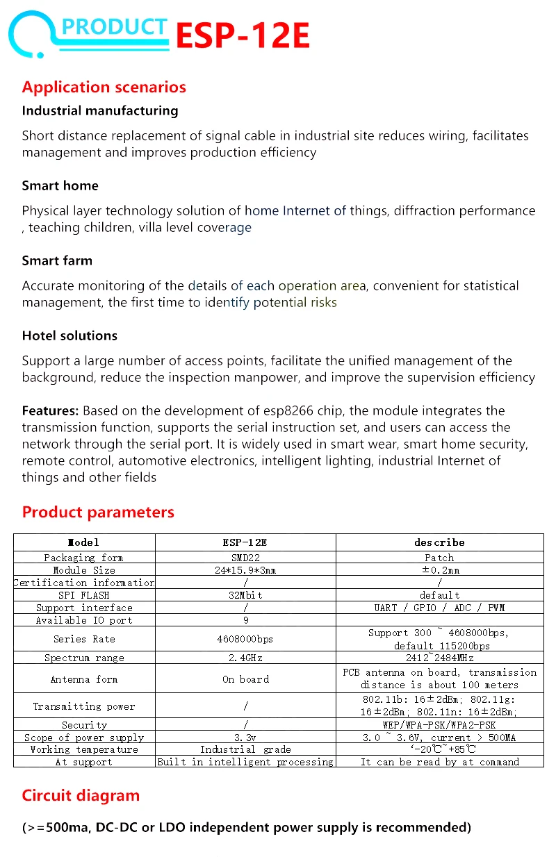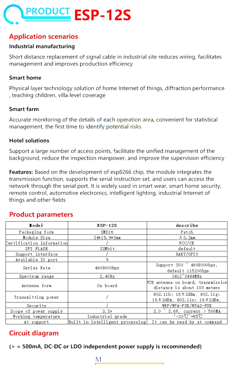 Model Number: ESP-12E ESP-12F ESP12S