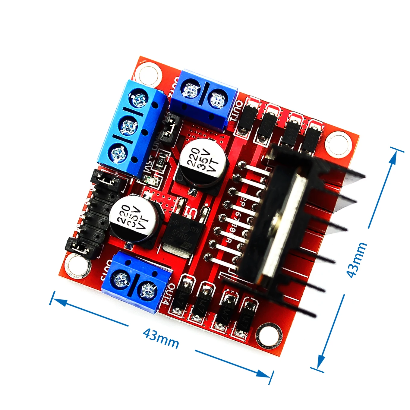 Using L298N made by ST company as the control chip, the module has such characteristics as strong driving