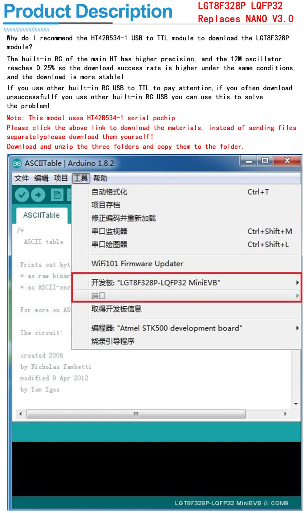 LGT8F328P MiniEVB Board Nano V3.0 Compatible with Arduino CH9340C HT42B534-1
