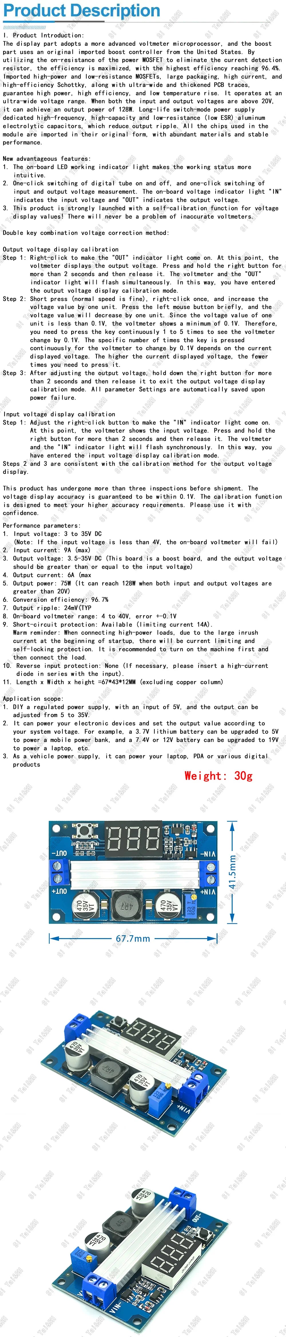 LTC1871 DC-DC Boost Converter Module 3–35V to 3.5–35V with Regulated Power Supply and Voltmeter