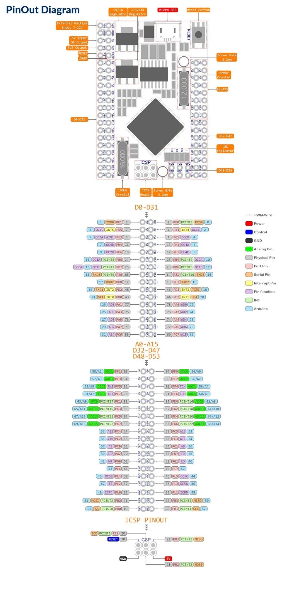Board for functionality similar to the Arduino Mega 2560. It is embed board, but the same stable, and uses the original chips ATmega2560 (16 MHz).