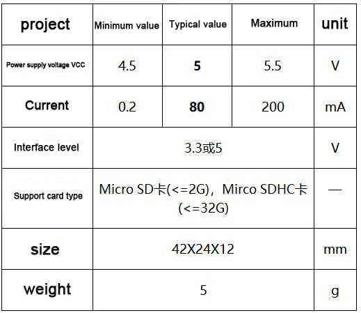 Supply Voltage: TF card reader module