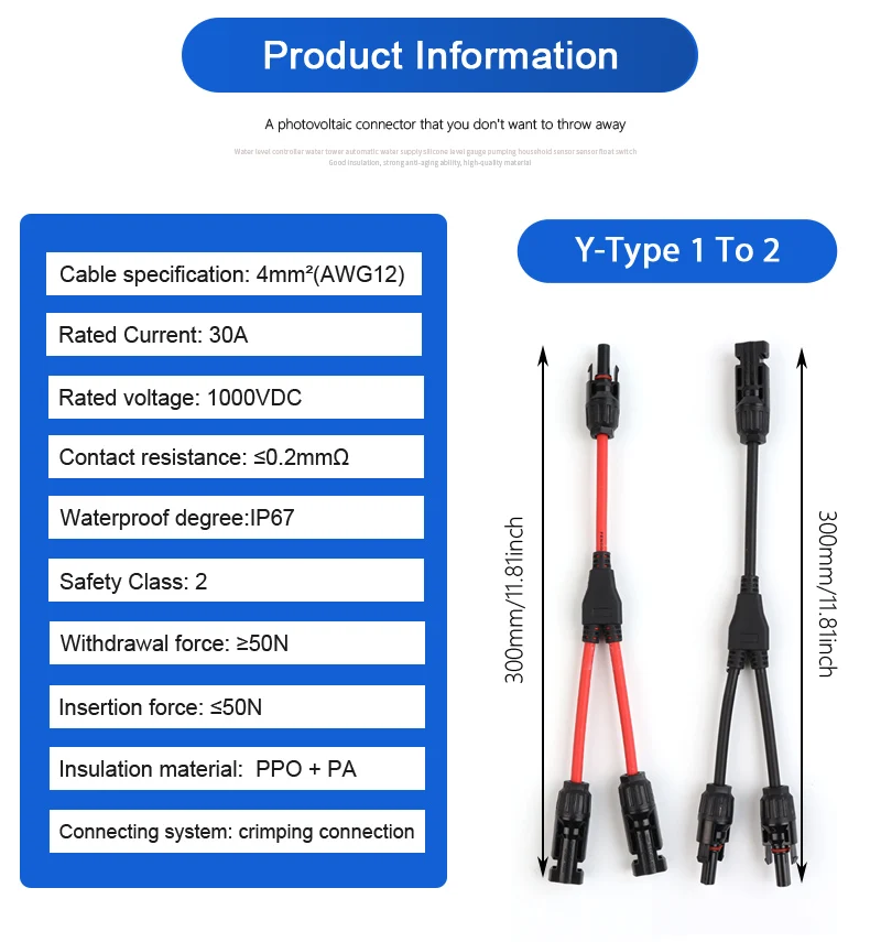 Model Number: Power Solar Connectors 30A Y-Branch Cable