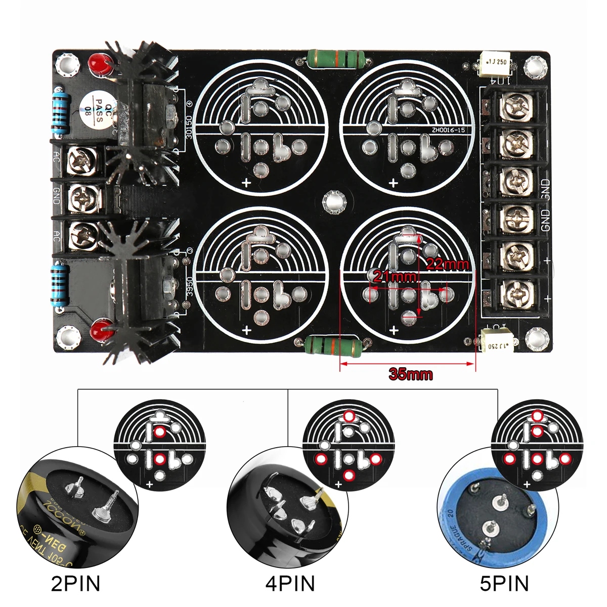 Support capacitor diameter: Maximum is 35mm