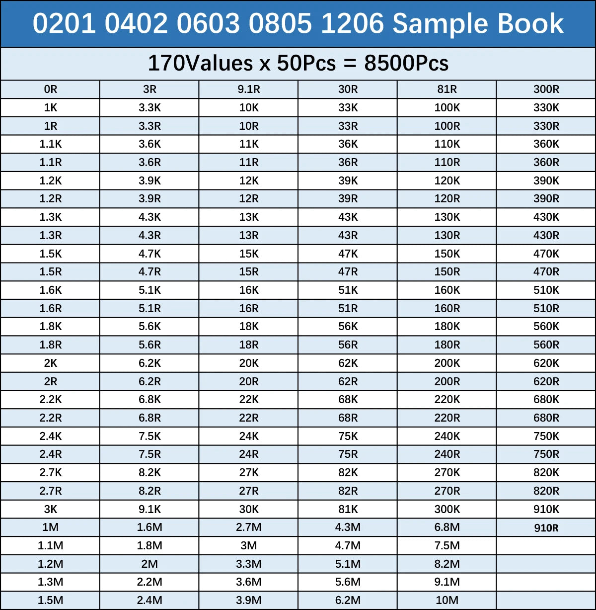 SMD Resistor Kit - 0805 0201 0402 0603 1206 Chip Resistors (0Ω-10MΩ, 1% Tolerance) - 170 Value Assortment for Electronics Projects