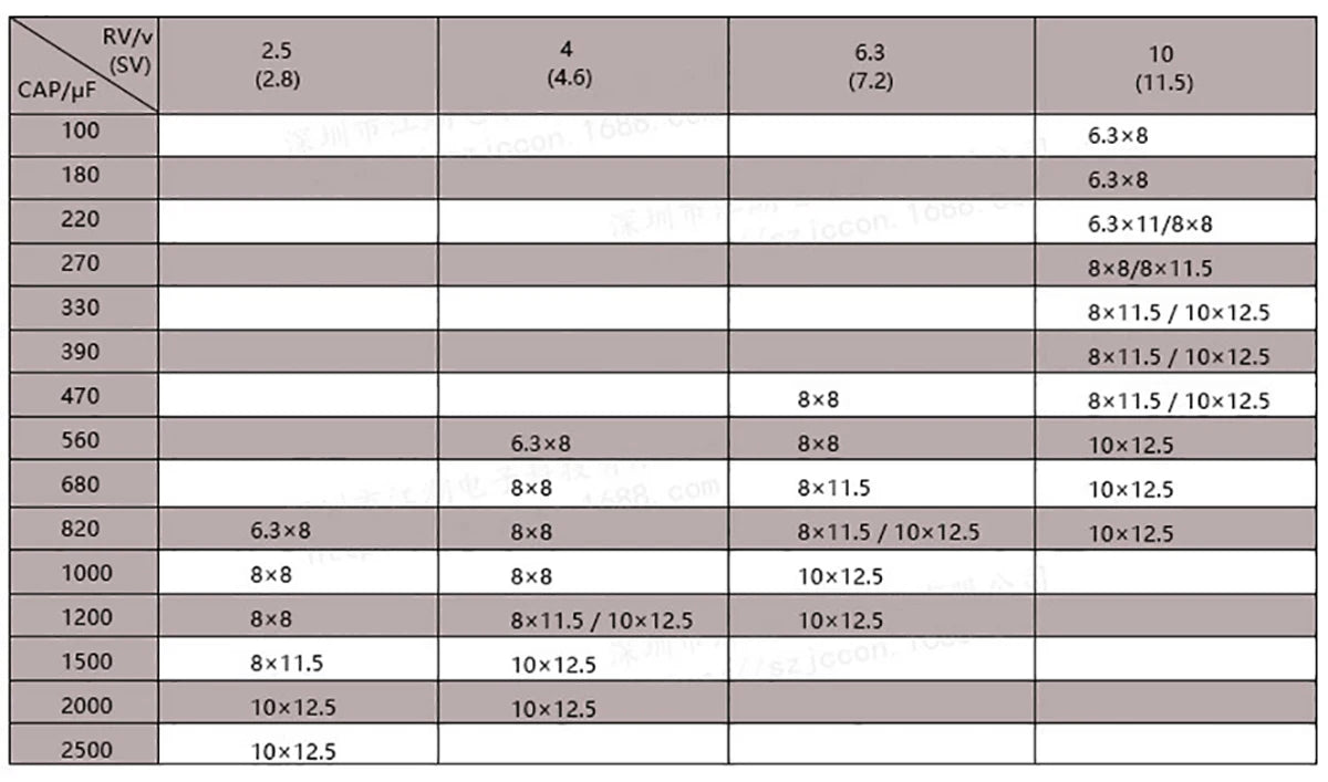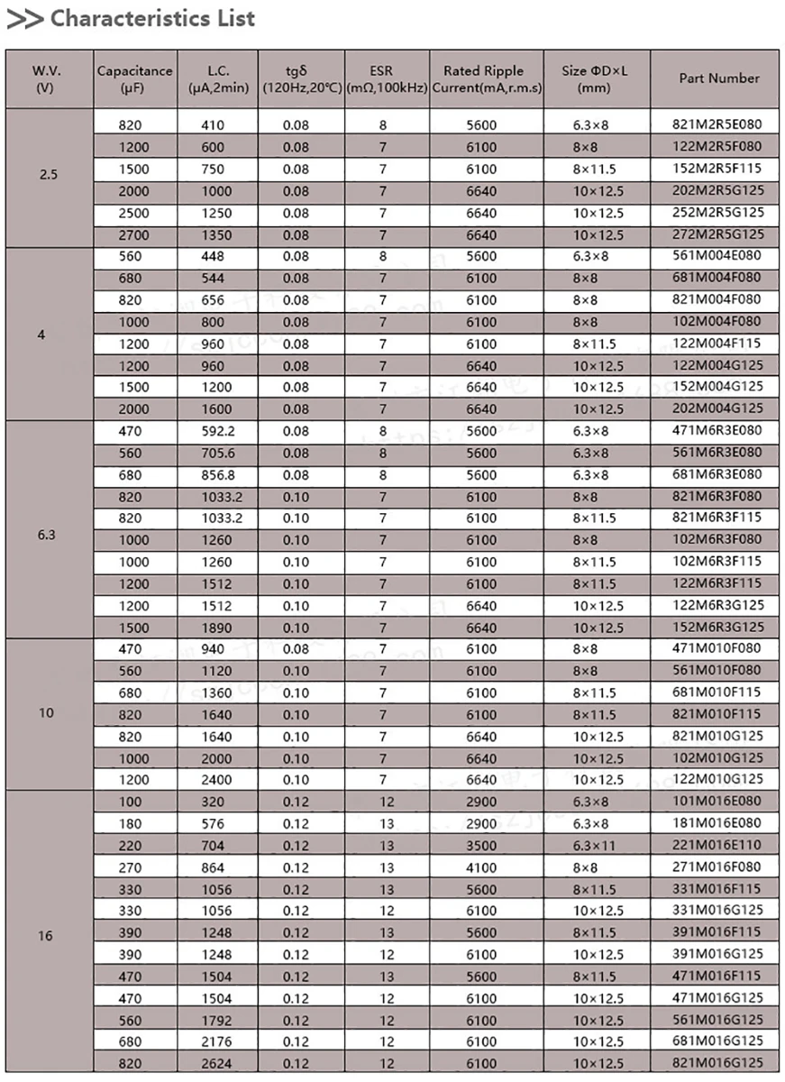 Rated Voltage: 25V 35V 50V 63V 80V 100V 400V 450V 250V 200V
