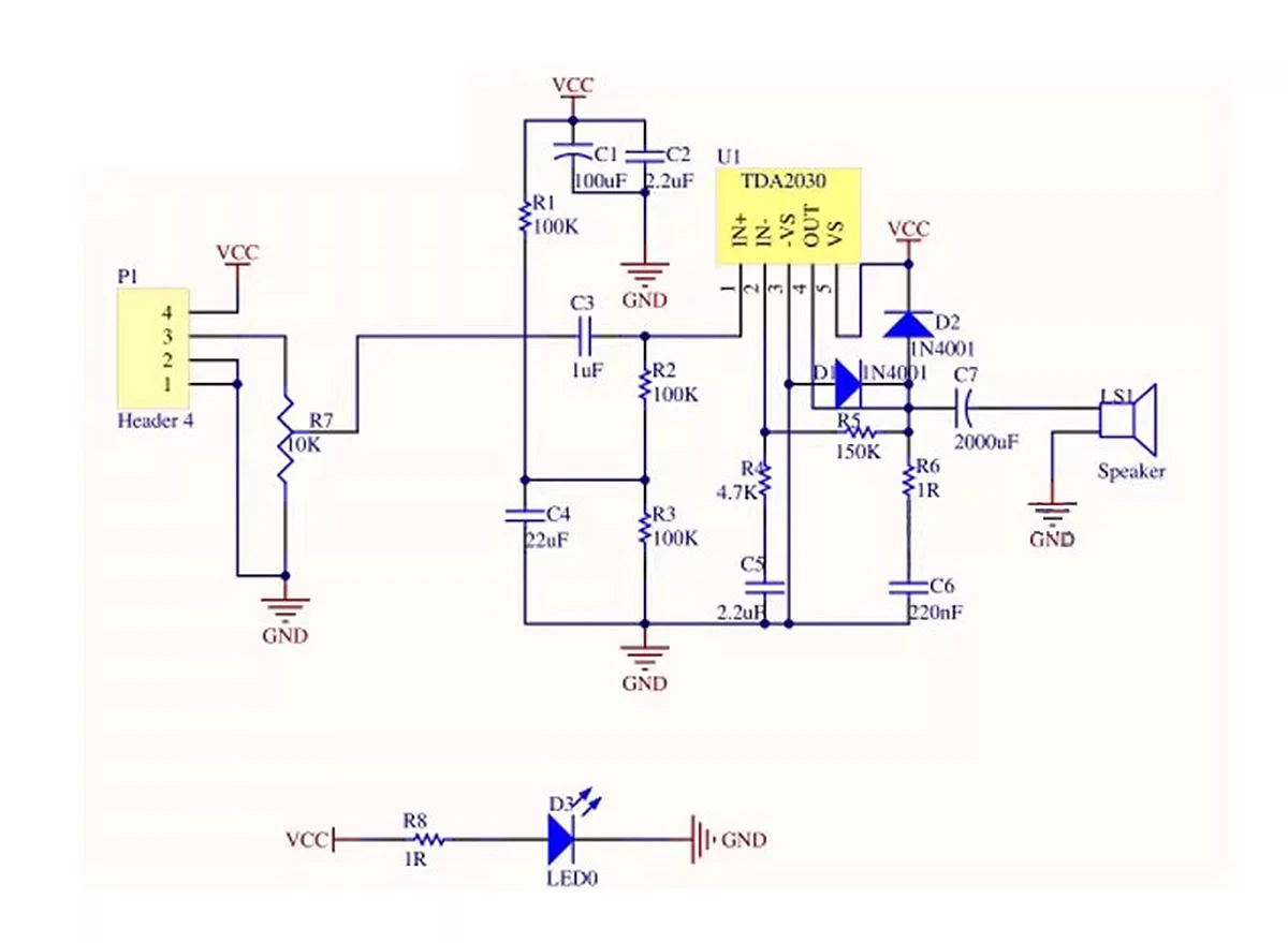 TDA2030A audio amplifier circuit, often using V-5-pin single in-line plastic package structure. The integrated circuit is widely used in car stereo receiver tape recorders, medium-power audio equipment, with small size, large output power, distortion and other characteristics. And has an internal protection circuit.