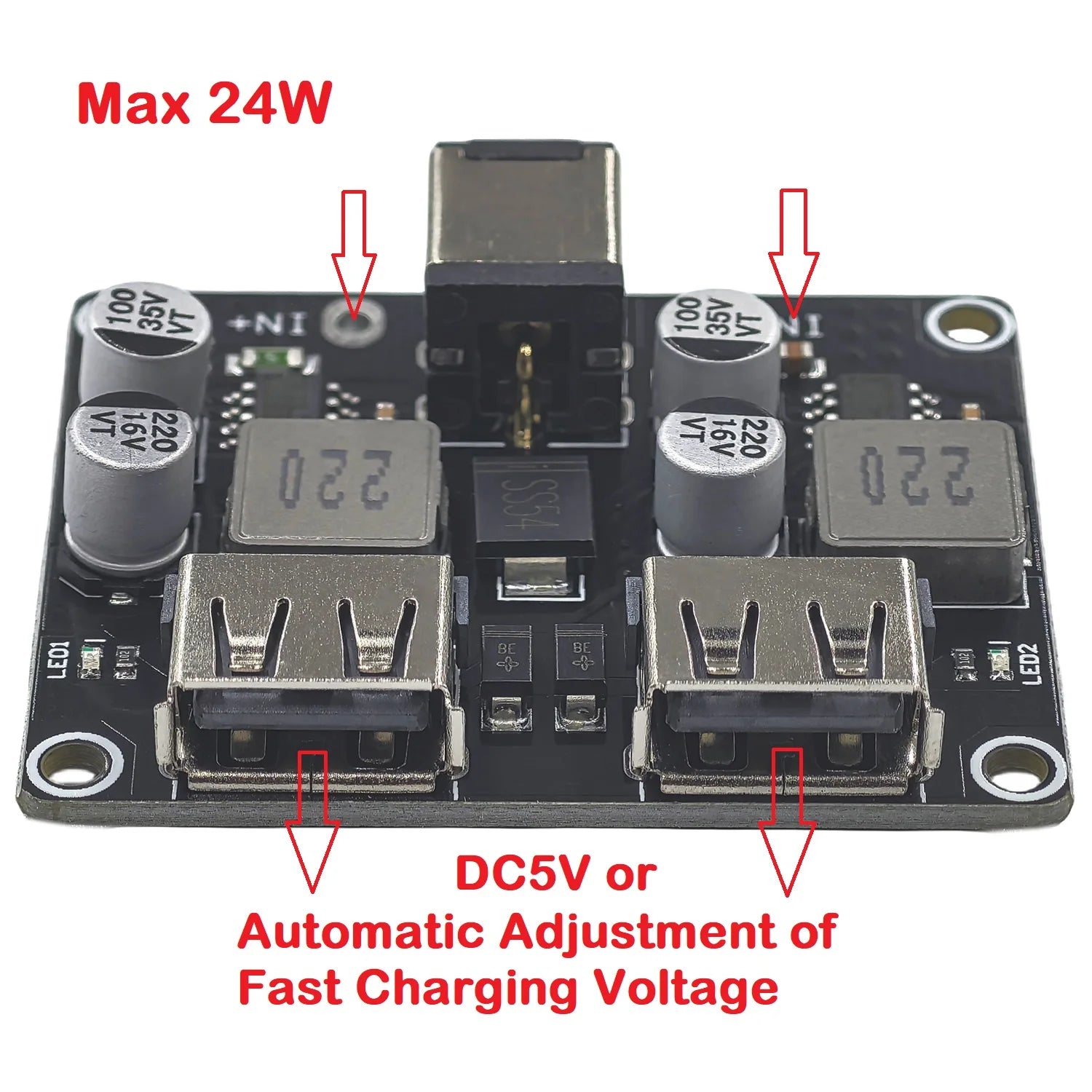 USB QC3.0 QC2.0 DC-DC Buck Converter Charging Step Down Module 6-32V 9V 12V 24V to Fast Quick Charger Circuit Board 5V 2-Channel